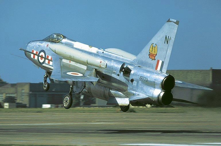 A Lightning eredeti rendeltetése még a V-bombázók reptereinek védelme volt. Ha nem is egy repterük, de a három bombázótípusból a legemlékezetesebb, az Avro Vulcan B.2 egy példánya látható a képen, négy, az 5. századba tartozó F.6 kíséretében. A kép a Strike Command megalakulásának napján készült, a kifejezetten emiatt összeállt kötelékről