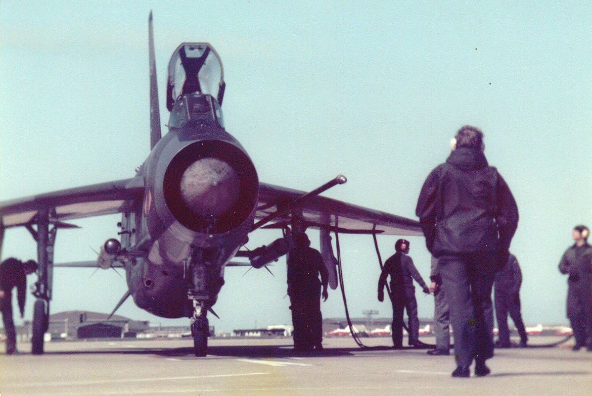 Gütersloh, 1987. Ekkor már csak látogatóba érkezhetett Lightning az addigi állomáshelyére, ahol korábban sem egyedüli típusként szolgált egyébként. A feladataikat részben a másodikként látható Jaguar vette át, részben pedig a harmadik helyen álló Phantom. Legelöl egy Tornado IDS (támadó változat), hátrébb F-16-osok